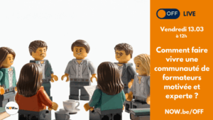 Tous les 15 jours, le vendredi à 12h, NOW.be vous donne rendez-vous pour une émission #OFF Live interactive de 50 à 60 min afin de découvrir de nouveaux concepts, de nouveaux outils, projets ou expériences et partager, avec nos experts, des conseils sur de nombreux sujets RH, formation, digitalisation, management, travail à distance, collaboration, prévention, diversité et inclusion, qualité de vie au travail, RSE, cohésion d’équipe, commercial, innovation. Venez participer !
