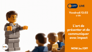 Tous les 15 jours, le vendredi à 12h, NOW.be vous donne rendez-vous pour une émission #OFF Live interactive de 50 à 60 min afin de découvrir de nouveaux concepts, de nouveaux outils, projets ou expériences et partager, avec nos experts, des conseils sur de nombreux sujets RH, formation, digitalisation, management, travail à distance, collaboration, prévention, diversité et inclusion, qualité de vie au travail, RSE, cohésion d’équipe, commercial, innovation. Venez participer !